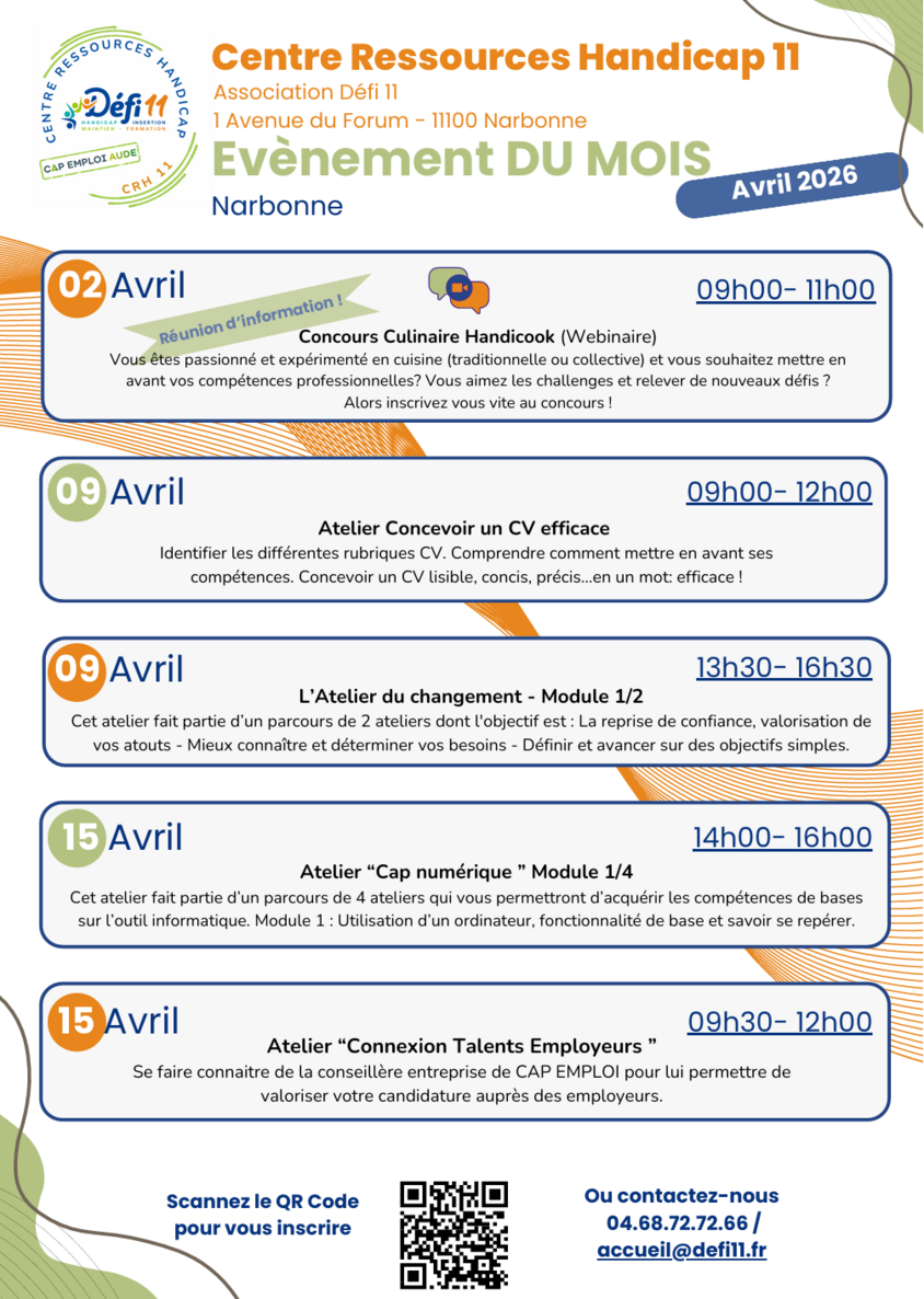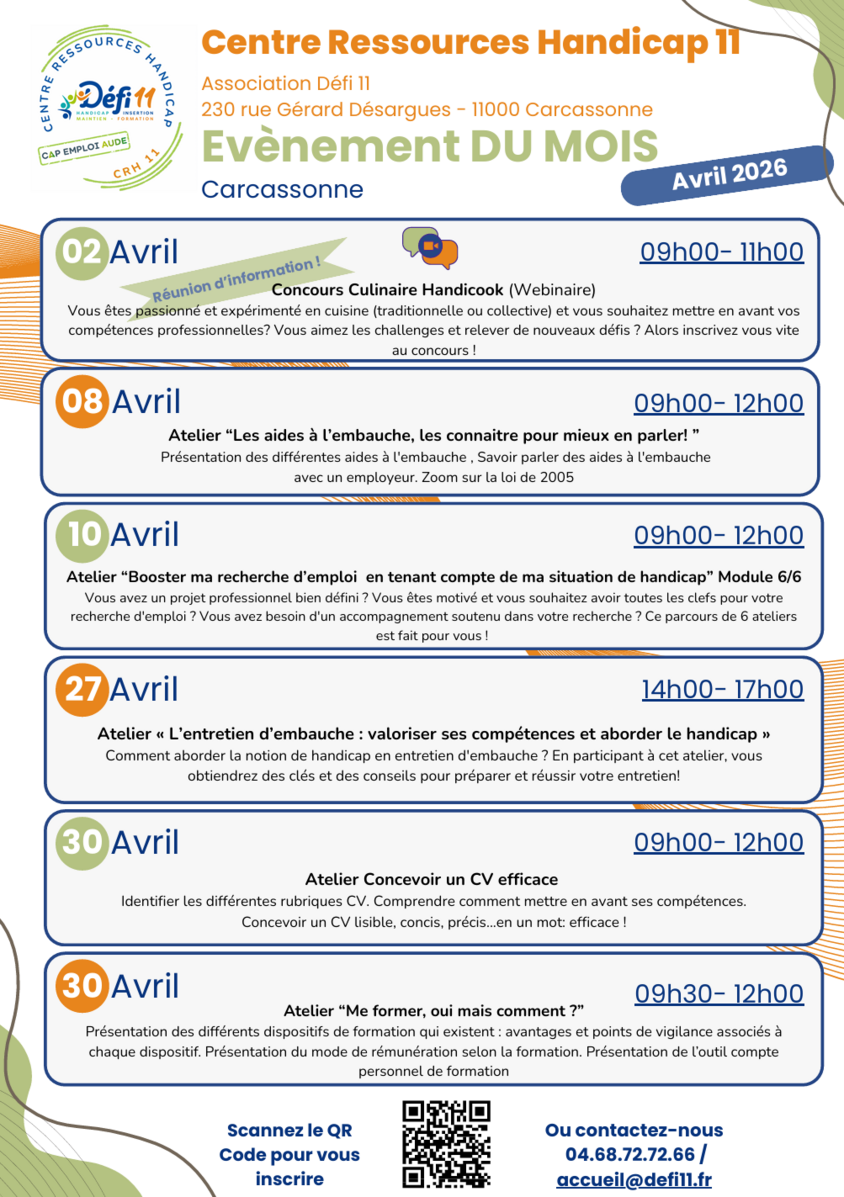 Centre Ressources Handicap 11 : Programme Avril 2026