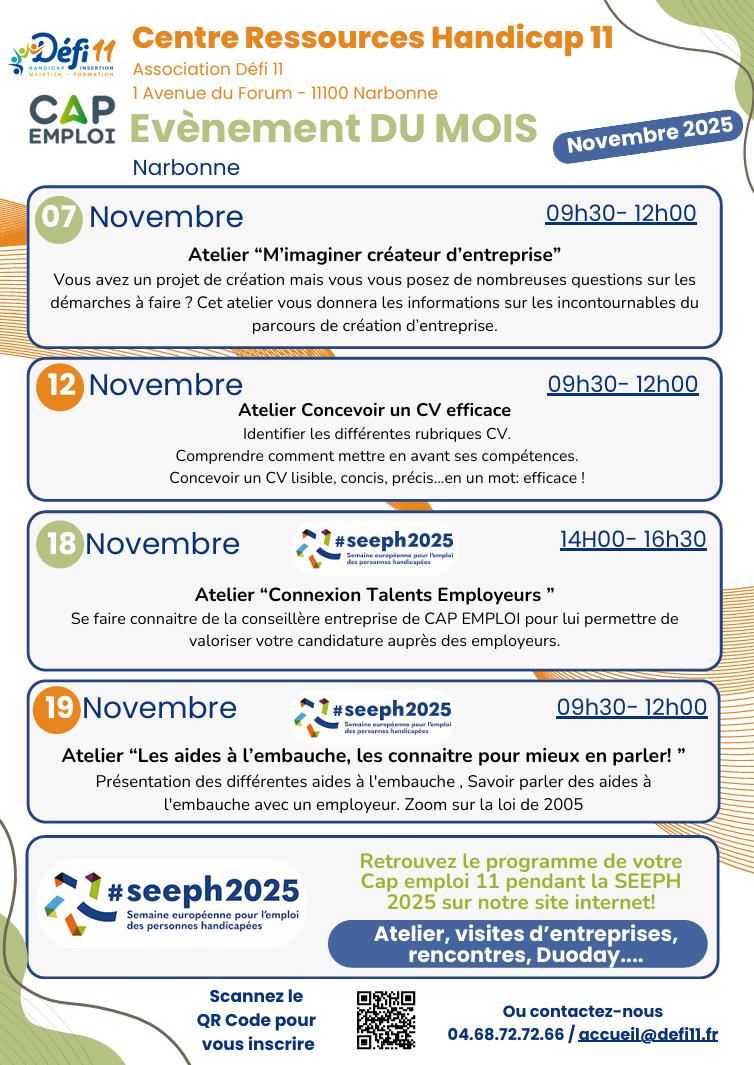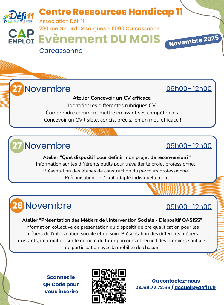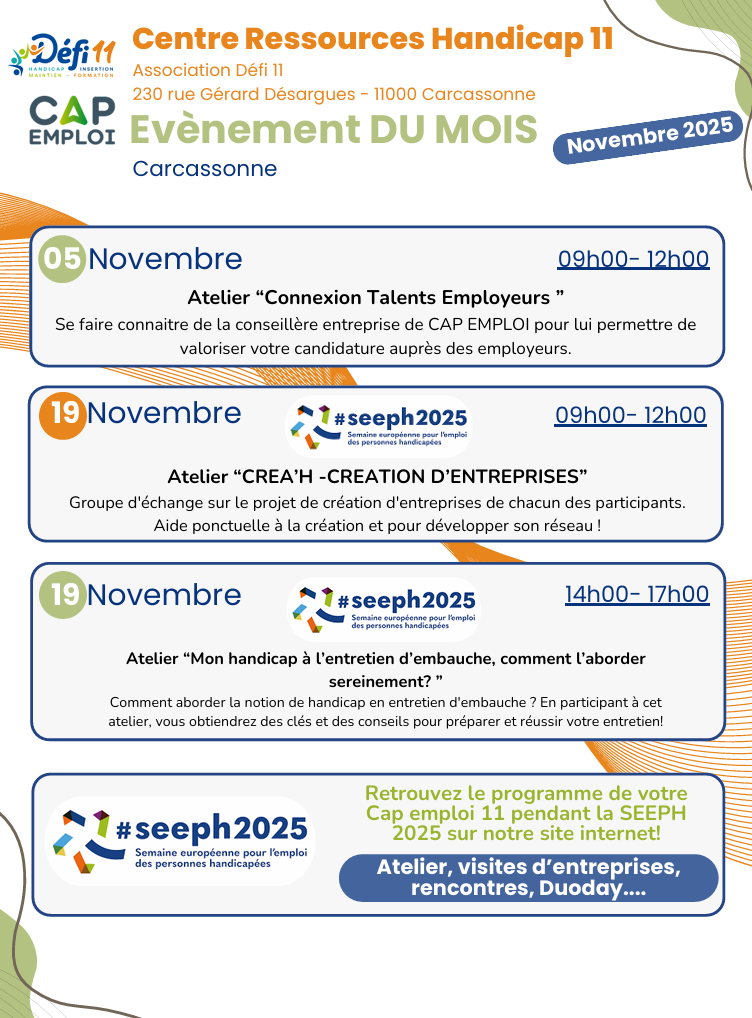 Centre Ressources Handicap 11 : Programme Novembre 2025