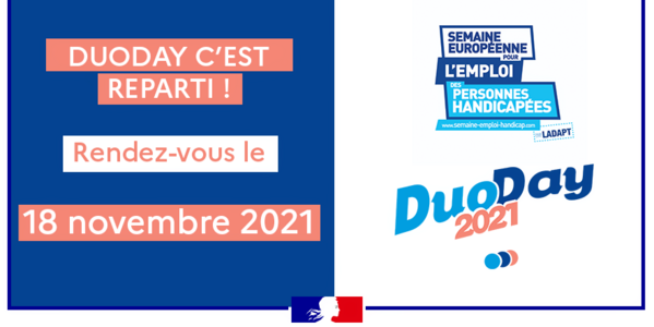 A vos agendas : la 4ème édition nationale du DuoDay se déroulera pour la deuxième année consécutive pendant la Semaine Européenne de l’Emploi des Personnes Handicapées (SEEPH), le 18 novembre 2021.