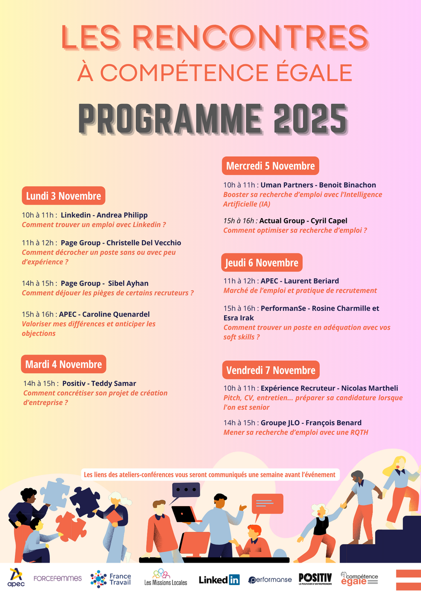 À compétence égale vous donne rendez-vous VIRTUELLEMENT du 3 au 7 novembre 2025 pour optimiser votre recherche d’emploi !