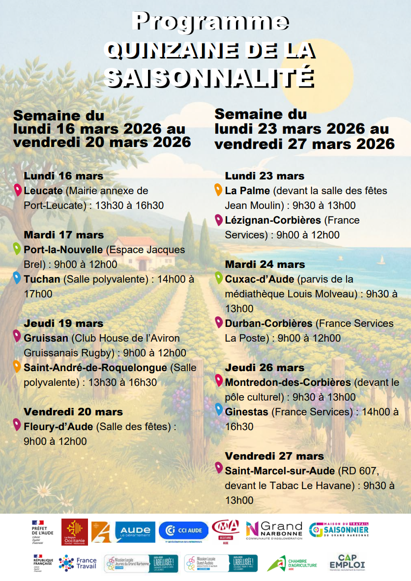 Le Réseau Pour l’Emploi organise du 16 au 27 mars 2026 « La Quinzaine de la saisonnalité » dédiée aux Emplois Saisonniers.