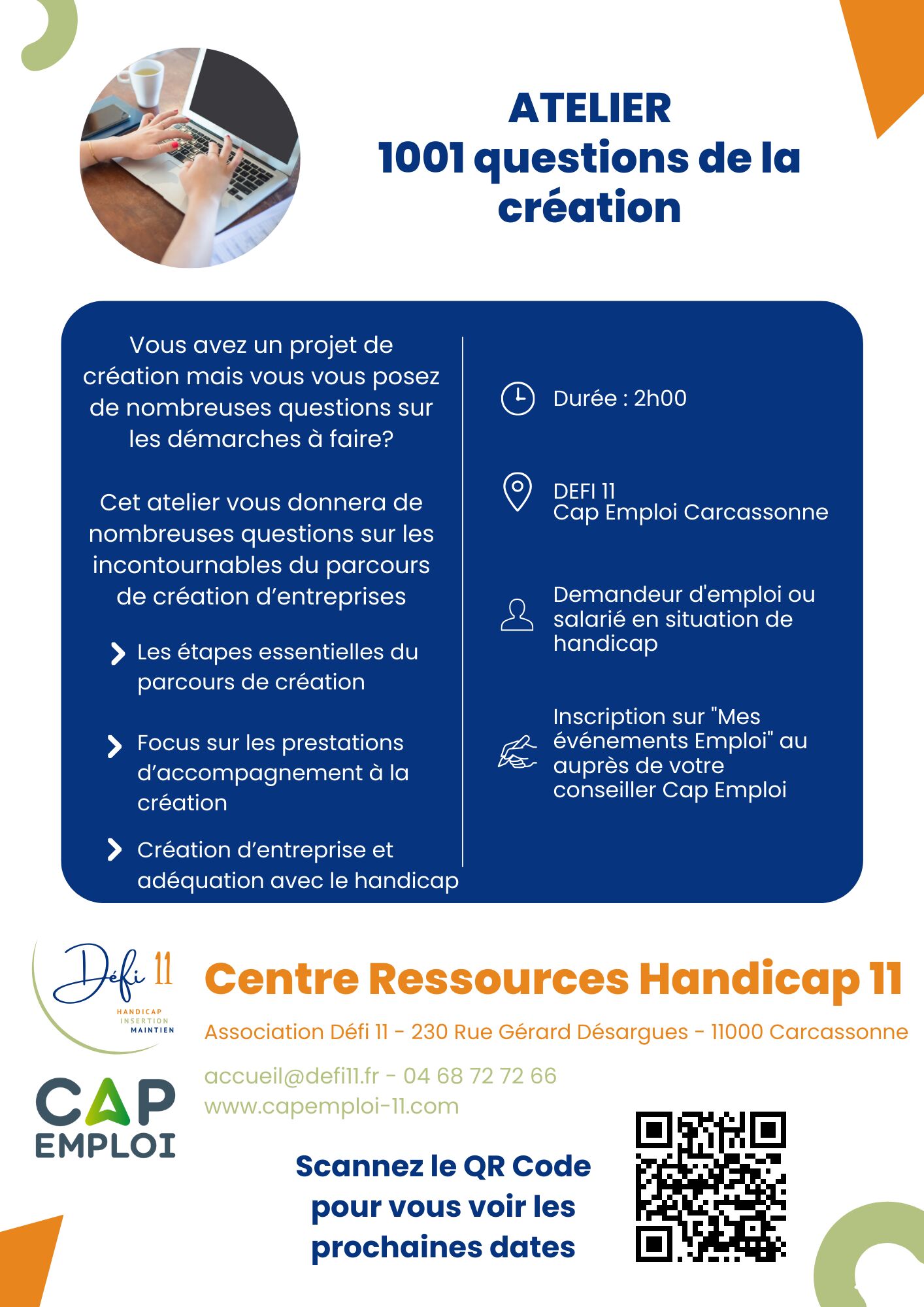 Lieu: CAP EMPLOI DEFI 11- 1 Avenue du forum - 11100 NARBONNE CENTRES RESSOURCES HANDICAP